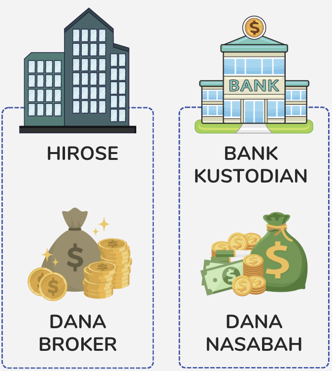 Dana Anda secara hukum dikelola oleh bank kustodian, sepenuhnya terpisah dari rekening Hirose.