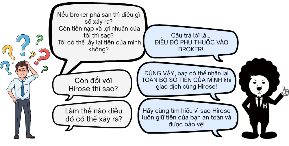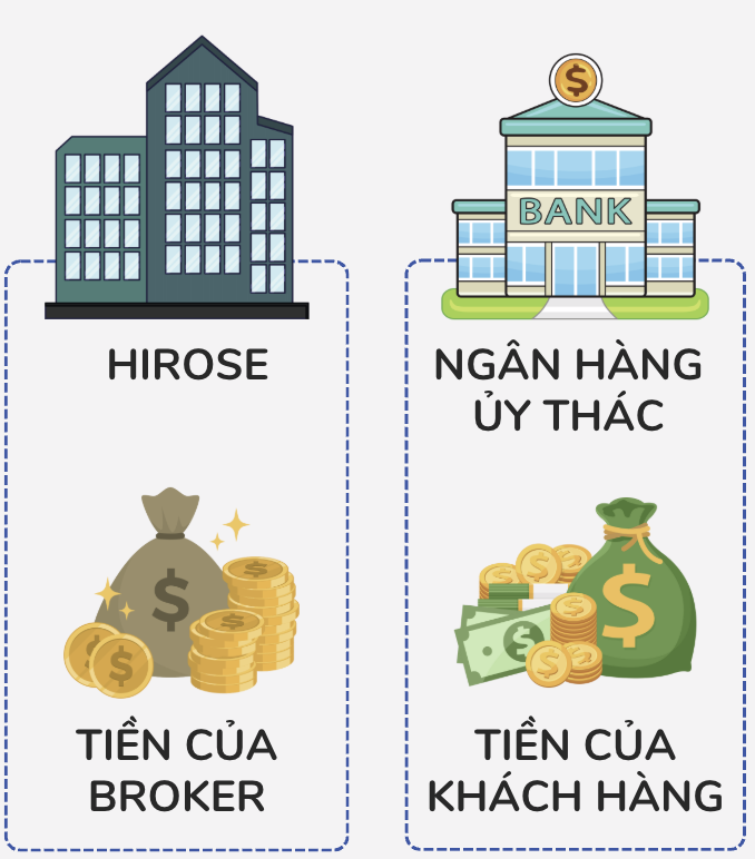 Tiền của bạn được quản lý hợp pháp bởi ngân hàng ủy thác, tách biệt hoàn toàn khỏi tài khoản của Hirose.