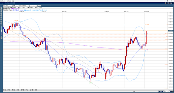 Terungkap bahwa tarif sebesar 20% akan dikenakan pada Uni Eropa, dan penjualan dolar segera menguat. Euro naik di atas level tertinggi 1,09 pada bulan Maret, mencapai 1,1145, yang merupakan level tertinggi sejak Oktober tahun lalu. Terdapat jeda sementara untuk pengambilan keuntungan, namun harga berhenti turun tepat sebelum mencapai 1,11.