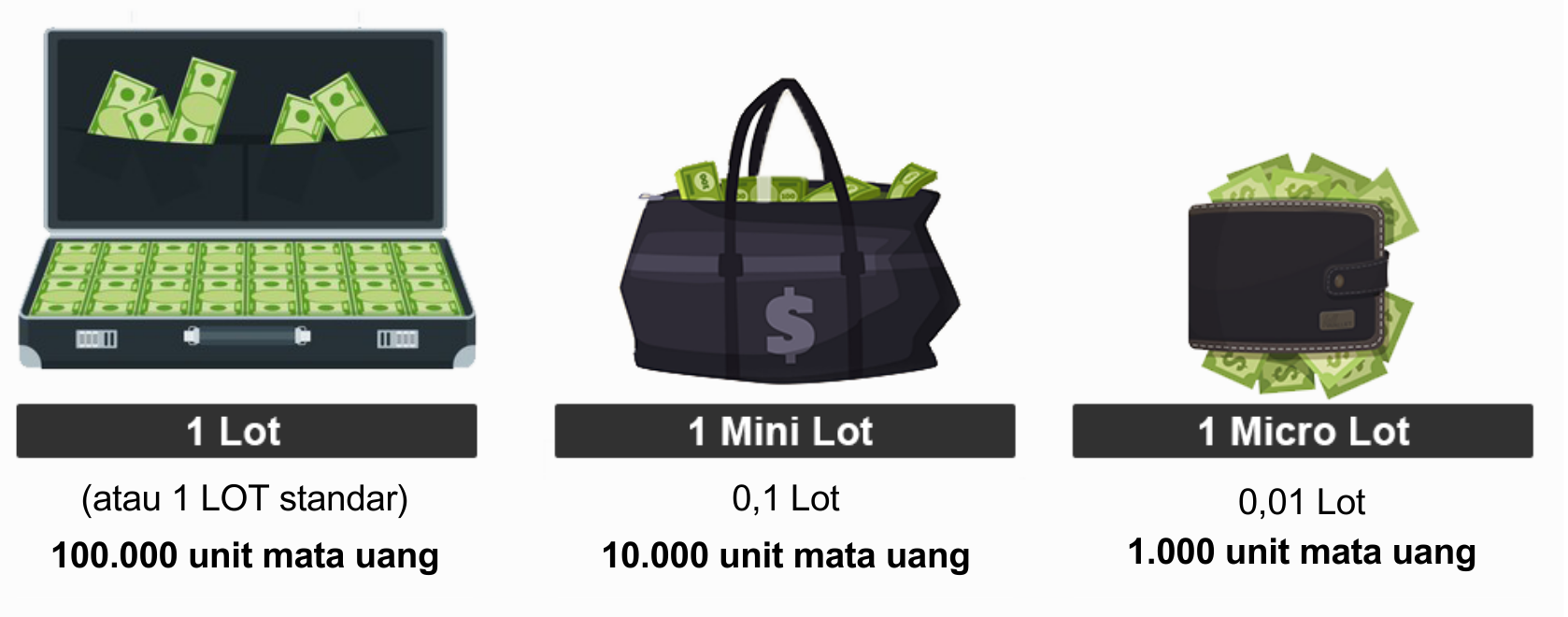 Dalam terminologi Forex, istilah LOT, MINI LOT, dan MICRO LOT digunakan untuk mewakili jumlah mata uang.