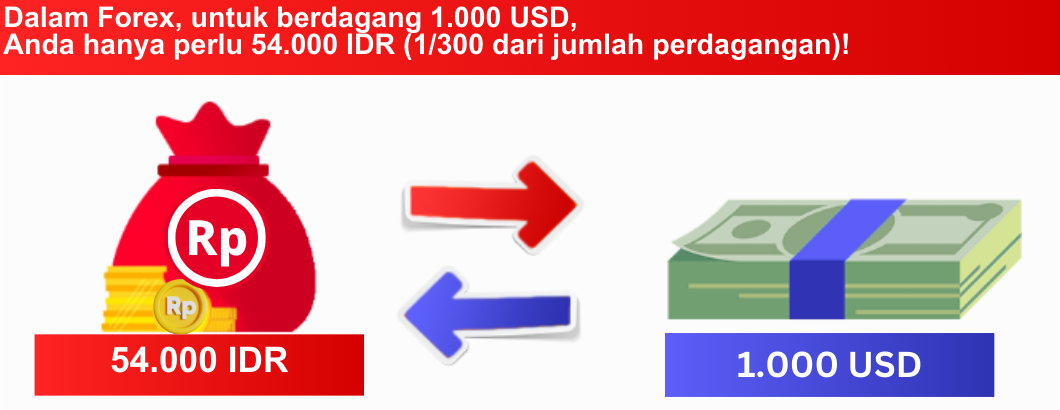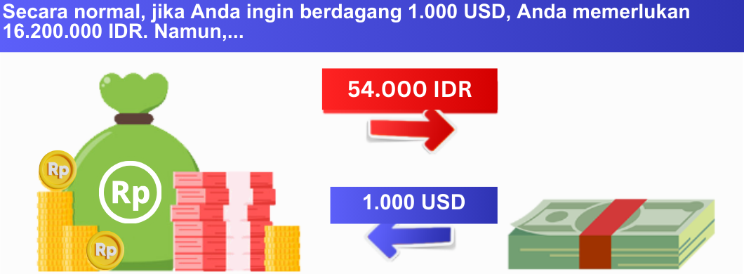 Anda dapat berdagang dengan jumlah modal hanya 1/300 dari jumlah perdagangan.