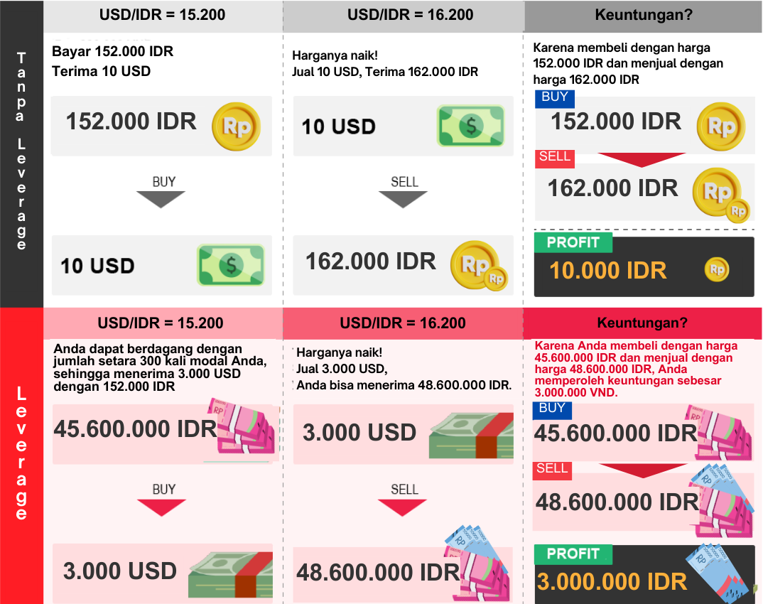 tetapi dengan Leverage, keuntungannya bisa mencapai 3.000.000 IDR!