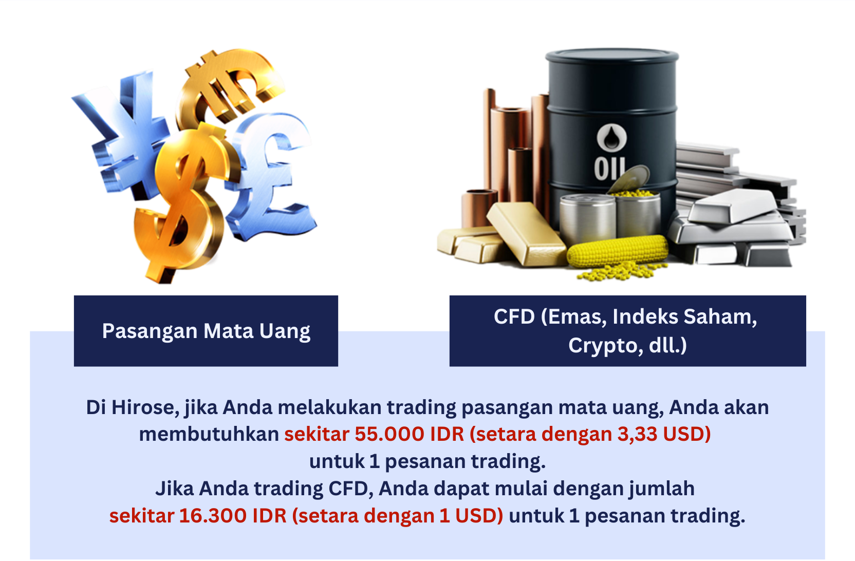 Jumlah perdagangan minimum untuk setiap pesanan perdagangan tergantung pada produk perdagangan.