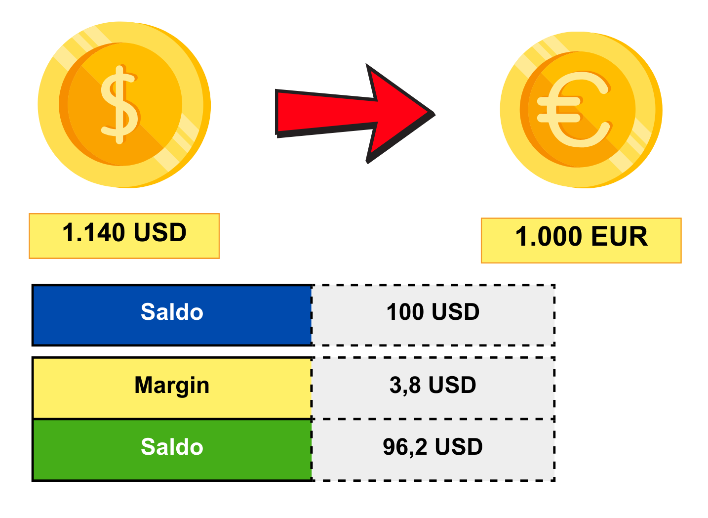 Setelah menggunakan 3,80 USD sebagai margin, jumlah yang dapat digunakan adalah 100 – 3,80 = 96,20 USD.
