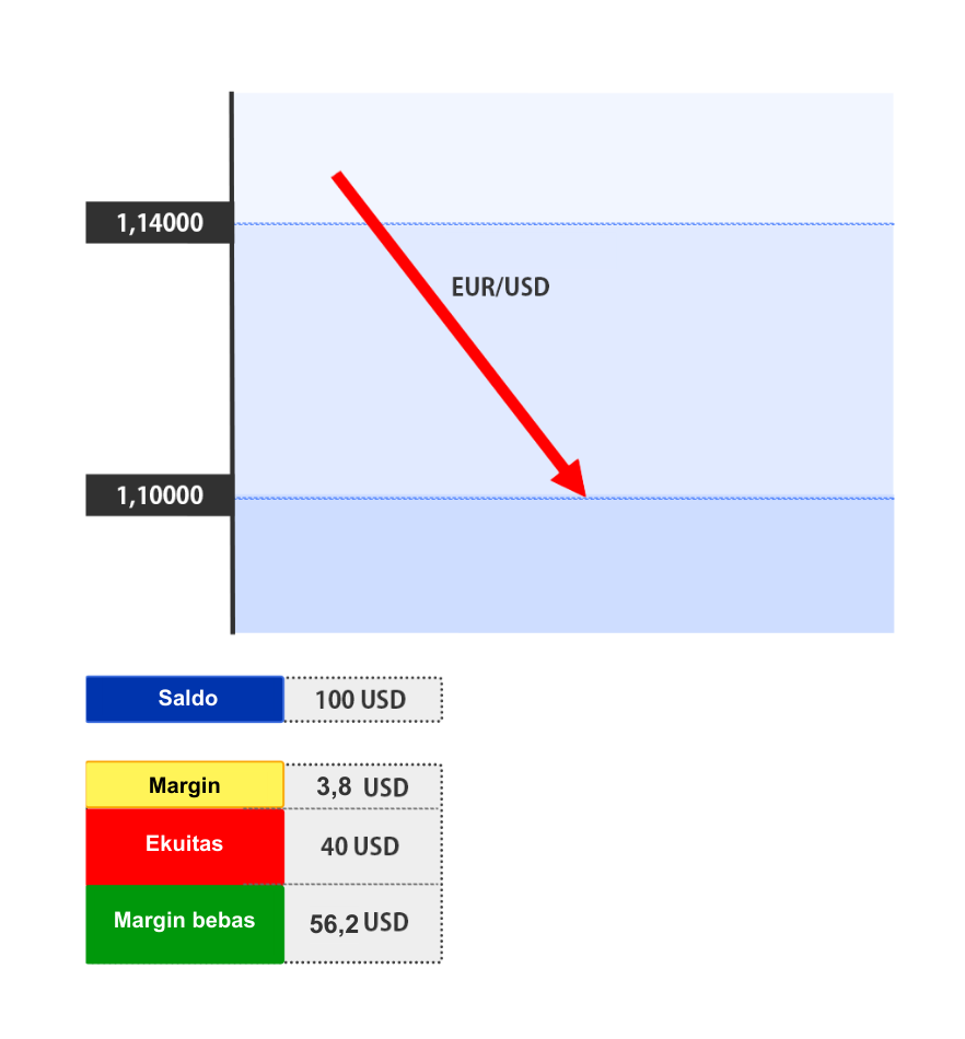 Ketika saldo akun = 100 USD dan harga EUR/USD = 1,14000, saya membeli 0,01 lot EUR/USD.