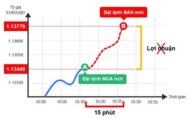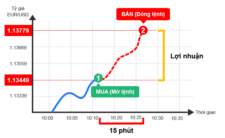 Nếu bạn giao dịch 10 lần 0,01 Lot (0,1 Lot), bạn có thể kiếm được lợi nhuận là 33 USD trong 15 phút.