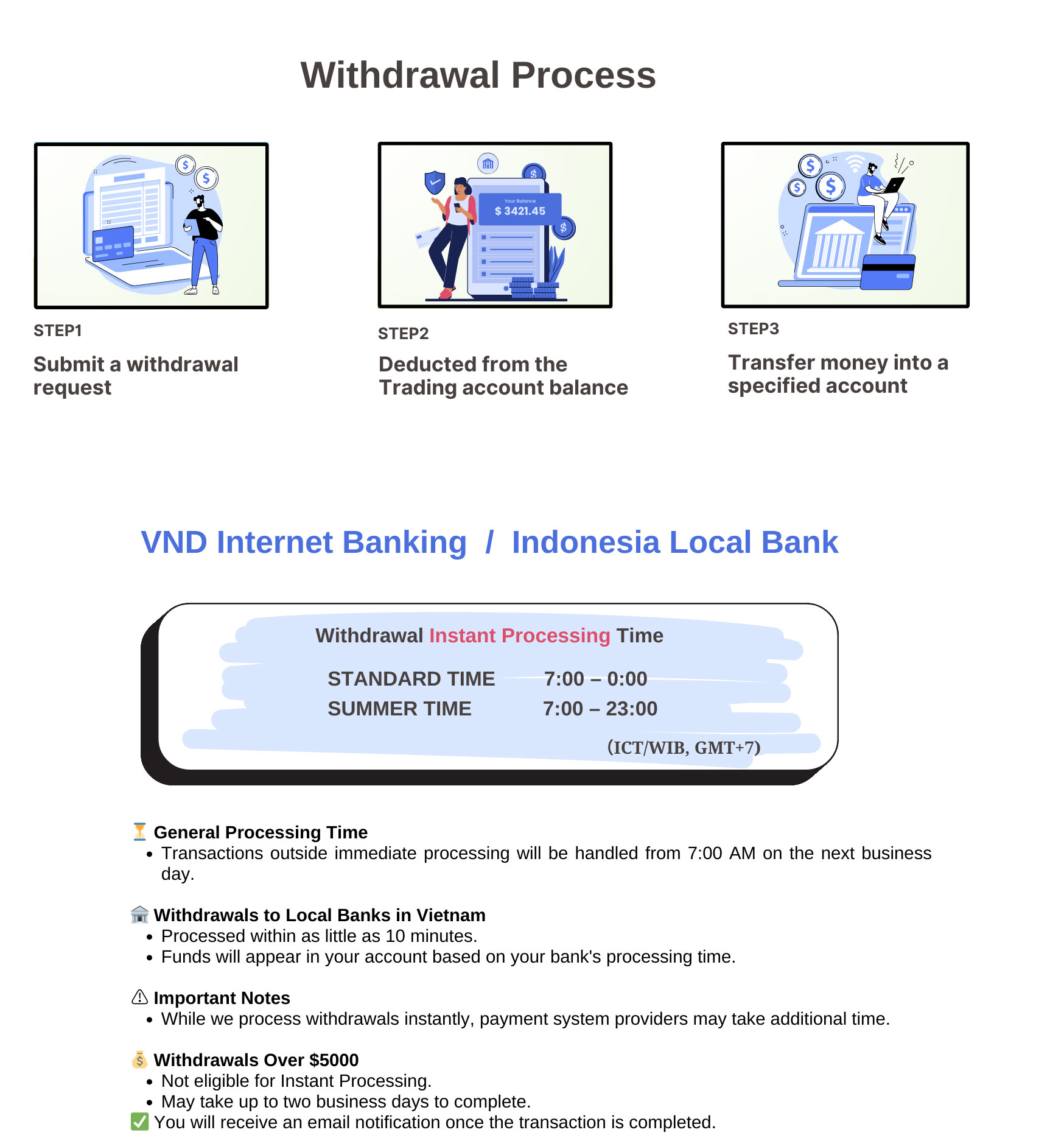 Once your withdrawal request has been processed, we will send you an email to notify you of your withdrawal request acceptance.
