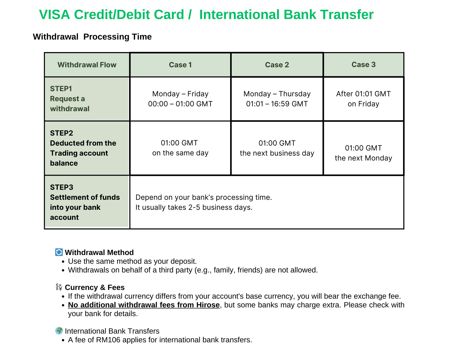※ At Hirose, we process withdrawal requests every day, from Monday to Friday (including holidays) .
