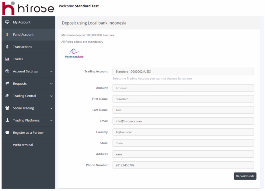 - Hirose tidak menerima deposit dari pihak ketiga.