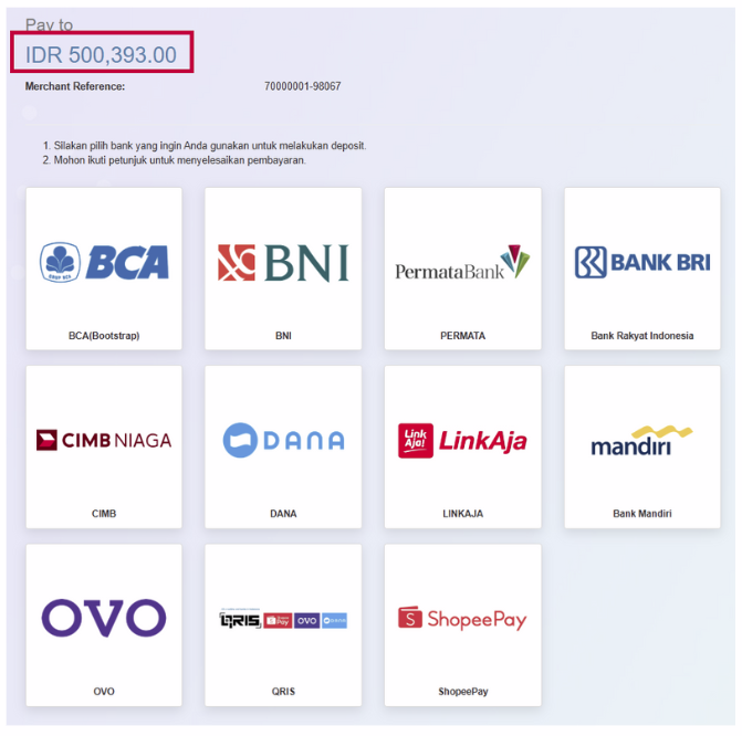 Silakan pilih metode deposit yang Anda inginkan dari opsi pembayaran yang tersedia.
