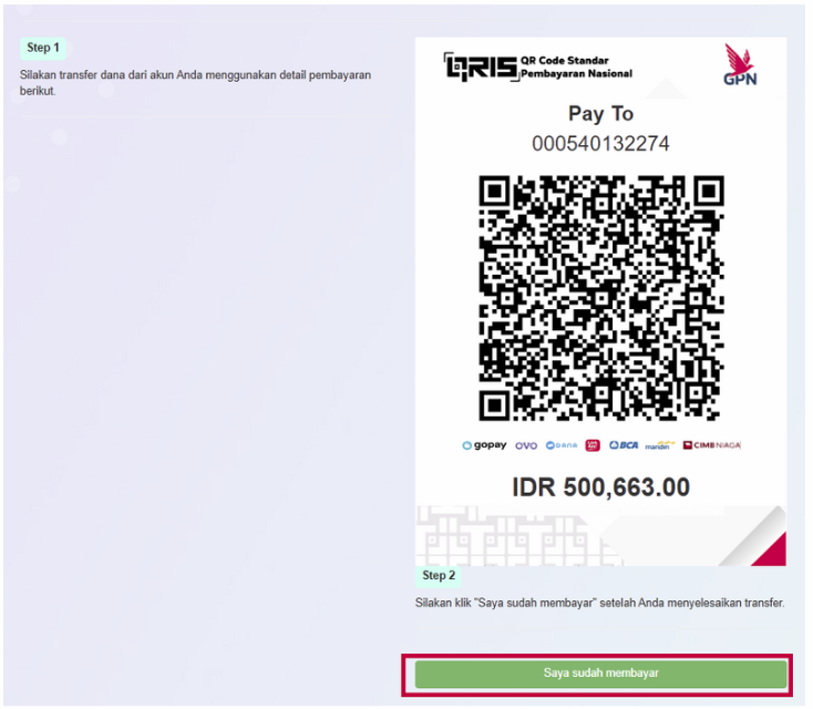 Setelah pembayaran selesai, klik [Saya sudah membayar].