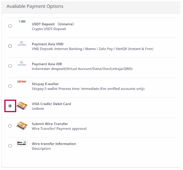 Cara Melakukan Deposit Menggunakan Kartu Kredit/Debit VISA