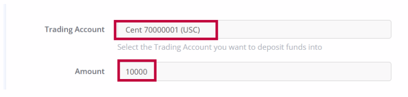 Jika Anda menggunakan Cent Account, harap masukkan jumlah deposit