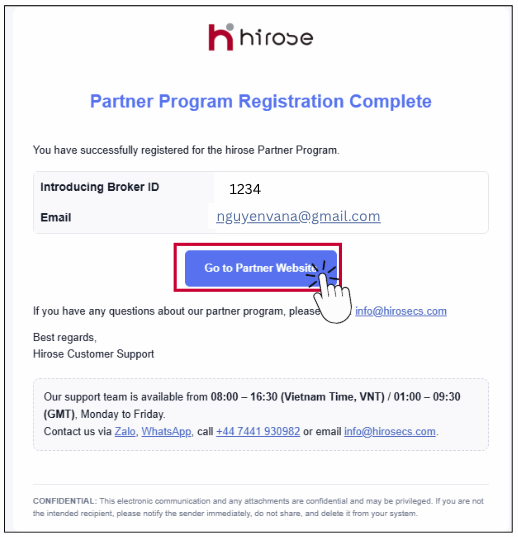 • 1. Check your email inbox. You will receive a Partner Program Registration Complete email.