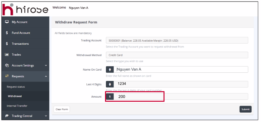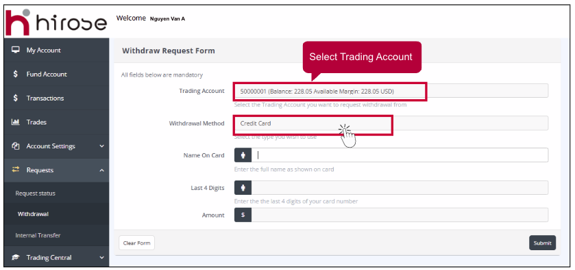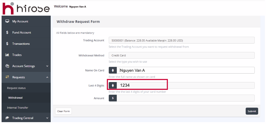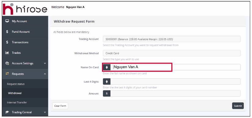 Nama pemegang kartu harus sesuai dengan nama yang terdaftar pada Akun Trading Anda.