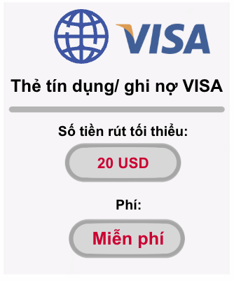 Việc rút tiền chỉ có thể được xử lý về cùng thẻ VISA tín dụng hoặc thẻ ghi nợ đã được sử dụng để nạp tiền trước đó.