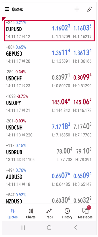 - • From the “Quotes” or “Trade” tab, tap the symbol you want to analyze.