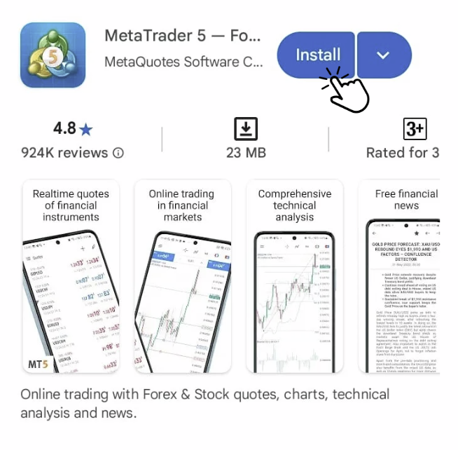 - Tap the app developed by MetaQuotes Software Corp. (make sure it’s the official one — check the logo and developer name).