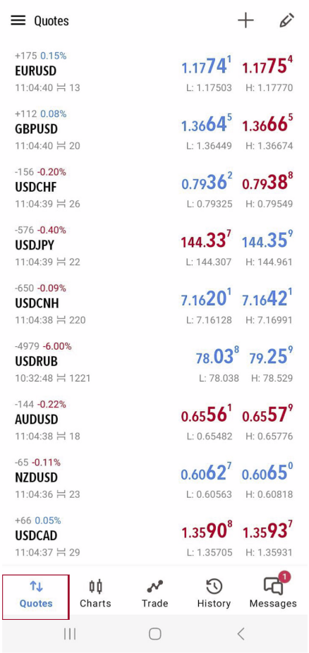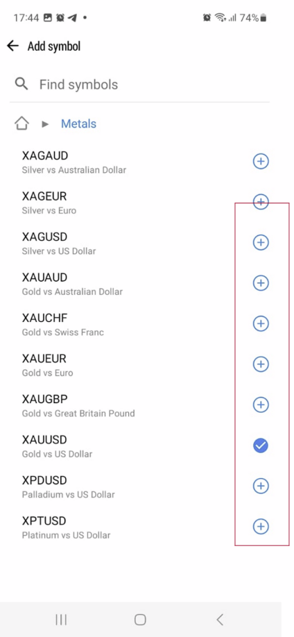 How to Add More Symbols (e.g., XAU/USD, EUR/USD): On the Quotes screen, tap the “+” icon (usually top right)