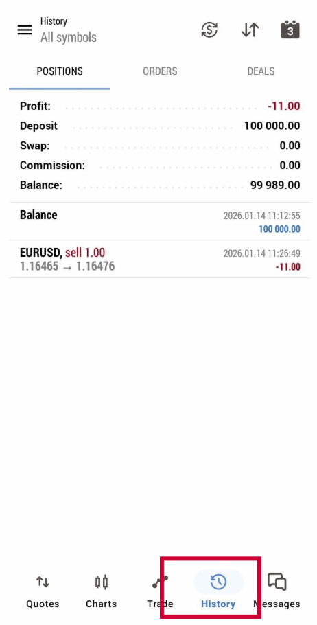 Cách Xem Lãi & Lỗ trên MT5 (Android)