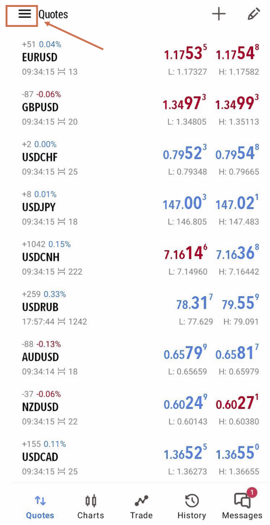 Note: The Android version of MT5 does not support price alerts directly on the app. However, you can still receive push notifications from your PC MT5 platform to your Android by linking the devices using MetaQuotes ID.