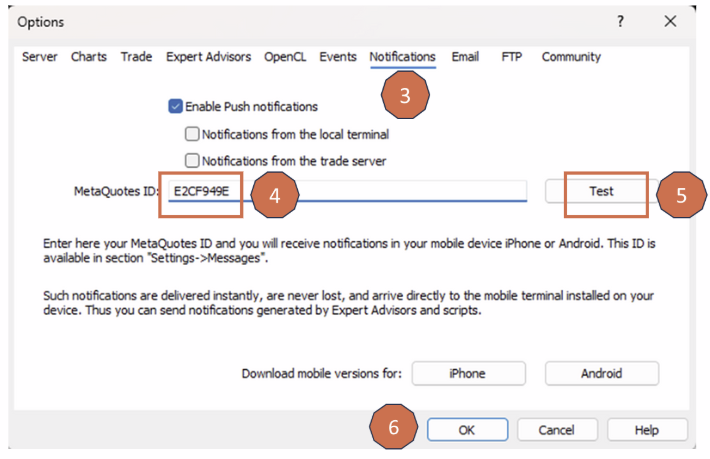 -Your MetaQuotes ID acts like an address – alerts will be sent to it.