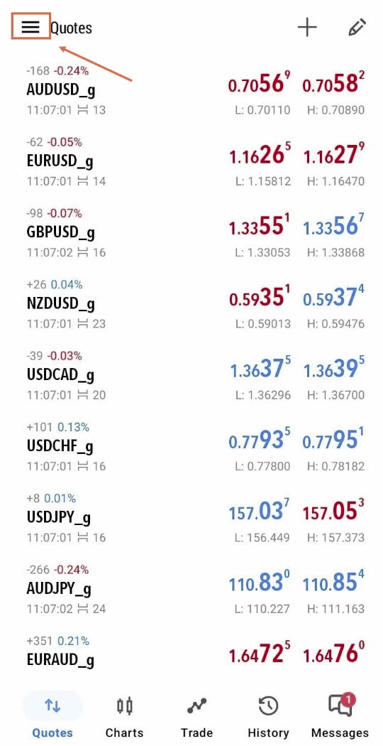 - 1. Buka aplikasi MT5 di ponsel Android Anda.