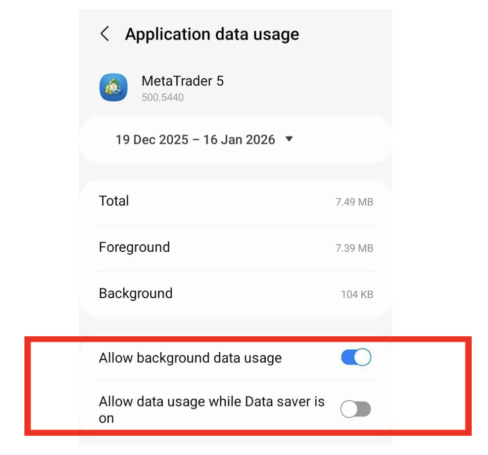 – Disable Battery Saver for MT5