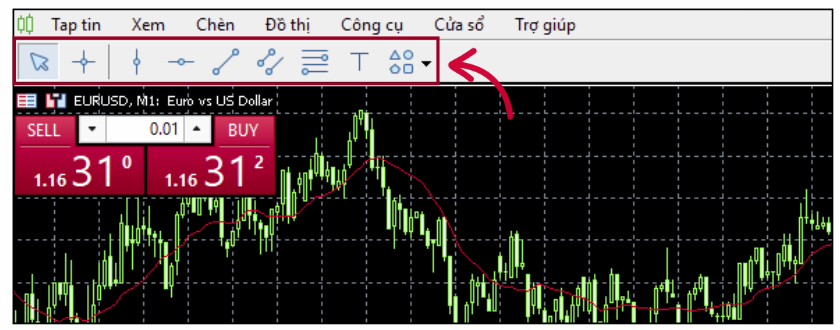 Có hai cách chính để thêm đối tượng vào biểu đồ trong MetaTrader 5: