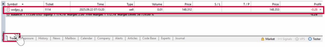 Nhấp đúp vào vị thế trong tab Trade (Giao dịch)