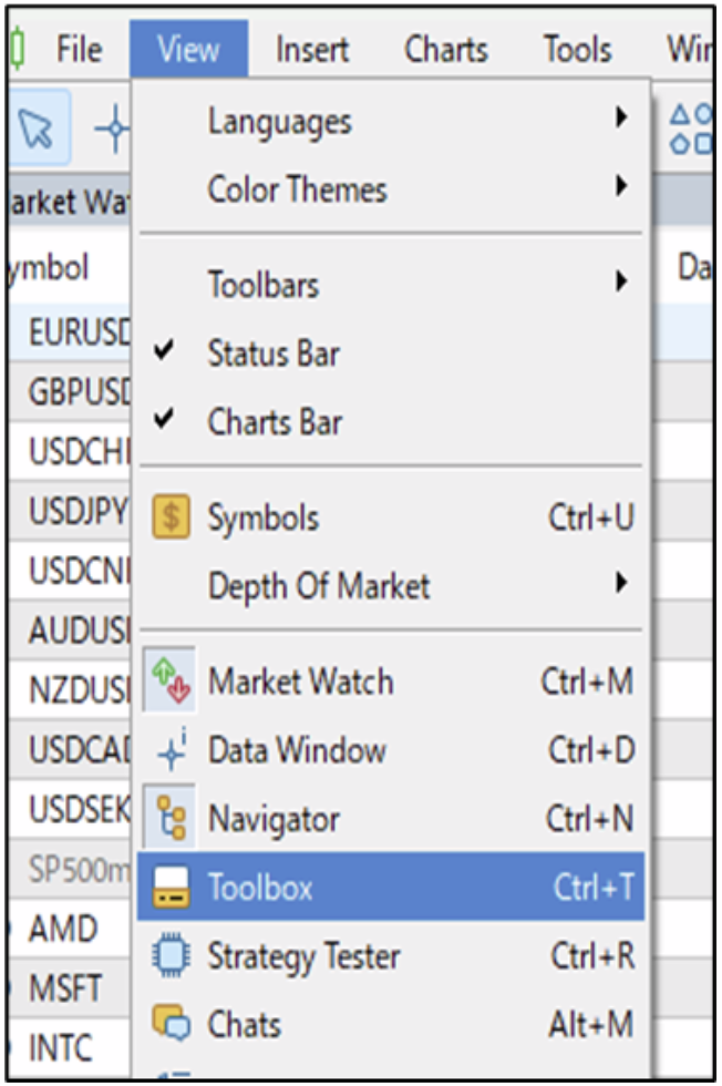 - Vào menu View và chọn “Toolbox”