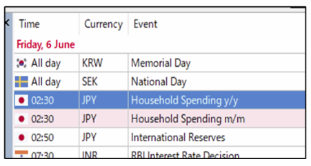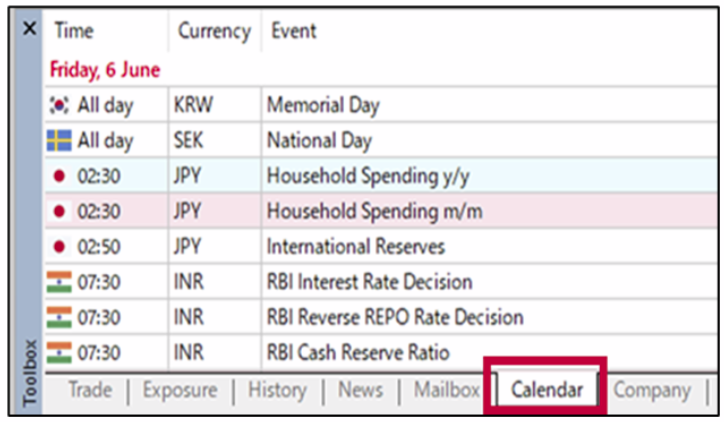 - Hiển thị dòng thời gian các sự kiện kinh tế sắp tới