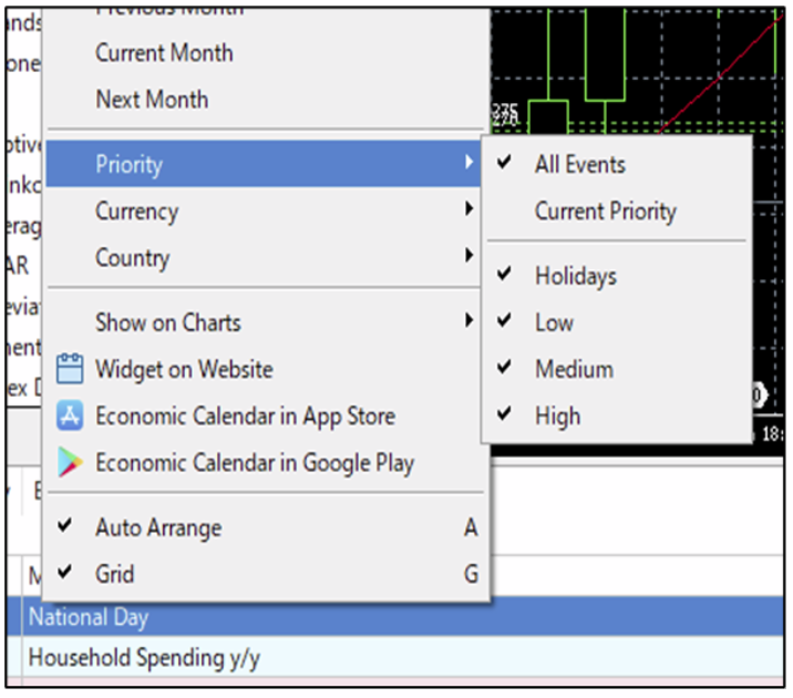Để tùy chỉnh những sự kiện kinh tế hiển thị trong lịch: