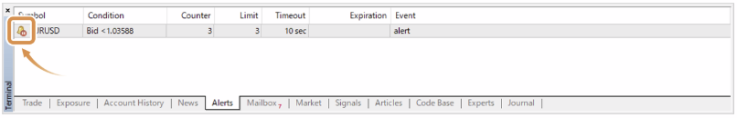 Bạn sẽ thấy cảnh báo đã được cài đặt trong tab “Alerts”.