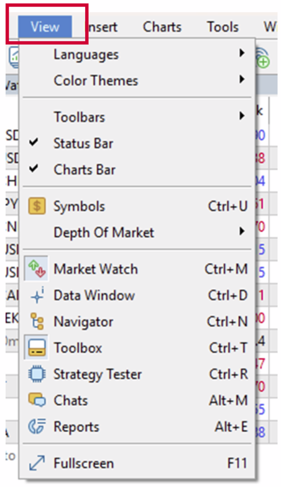 – Nếu không thấy, hãy nhấp chuột phải vào một tên tab bất kỳ (ví dụ: Trade hoặc History).
