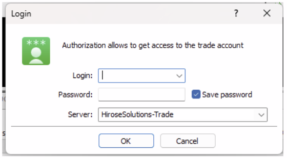 - Server: Chọn máy chủ HiroseSolutions-Trade