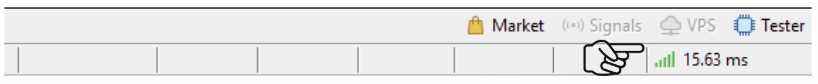 - Nếu thành công, góc dưới bên phải sẽ hiển thị các thanh màu xanh/đỏ cho biết tốc độ kết nối (ví dụ: “15,63 ms”).