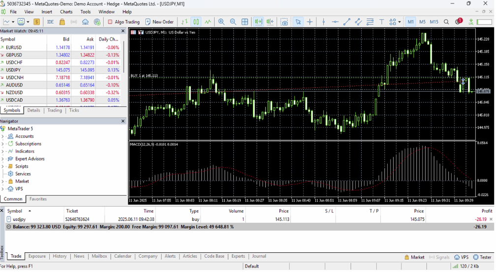 Giao diện của nền tảng giao dịch có thể tùy chỉnh linh hoạt. Bạn có thể chọn chỉ hiển thị những công cụ mà bạn đang cần. Ví dụ: bạn có thể ẩn Market Watch và Navigator, đồng thời hiển thị Depth of Market và Data Window.
