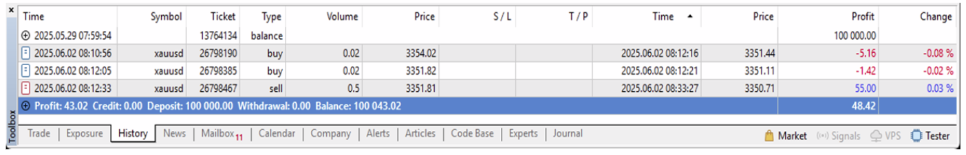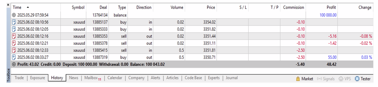- 13. Journal: Displays a log of all actions and system messages performed on the MT5 platform, useful for troubleshooting and verifying operations.