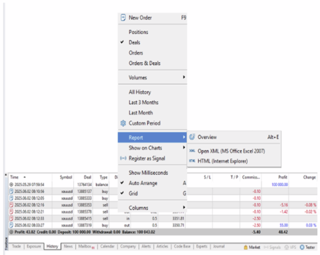 MT5 cho phép bạn tạo báo cáo cho toàn bộ lịch sử giao dịch của mình
