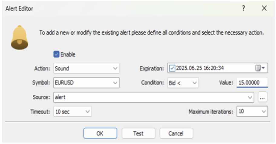 7. Expiration – Chọn ngày và giờ hết hạn cho cảnh báo.