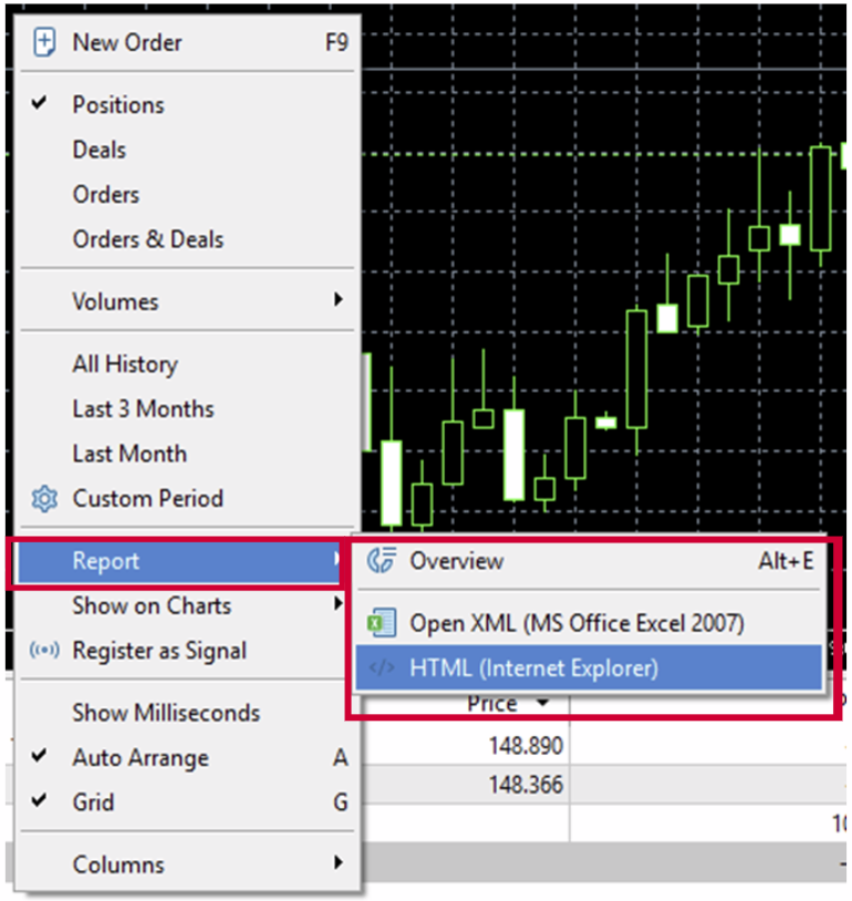 – MT5 akan menghasilkan file yang dapat Anda buka di browser yang menampilkan semua detail trade dan ringkasan akun.
