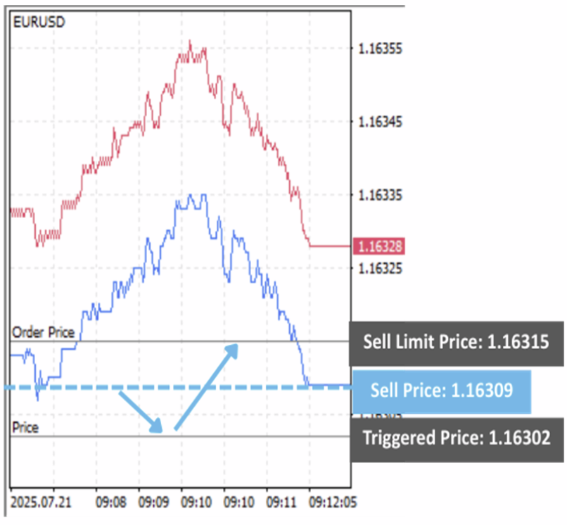 Example: Suppose you place a Sell Stop Limit order with a Stop Price of 1.16302 and a Sell Limit Price of 1.16315.