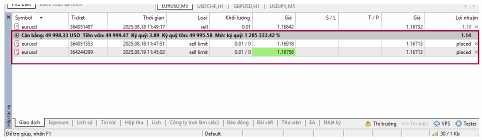 Lệnh chờ mới sẽ được thêm vào tab Giao dịch trong bảng Công cụ.