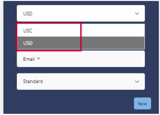 - Currency → USC (Cent Account: 1/100 of the standard account unit)