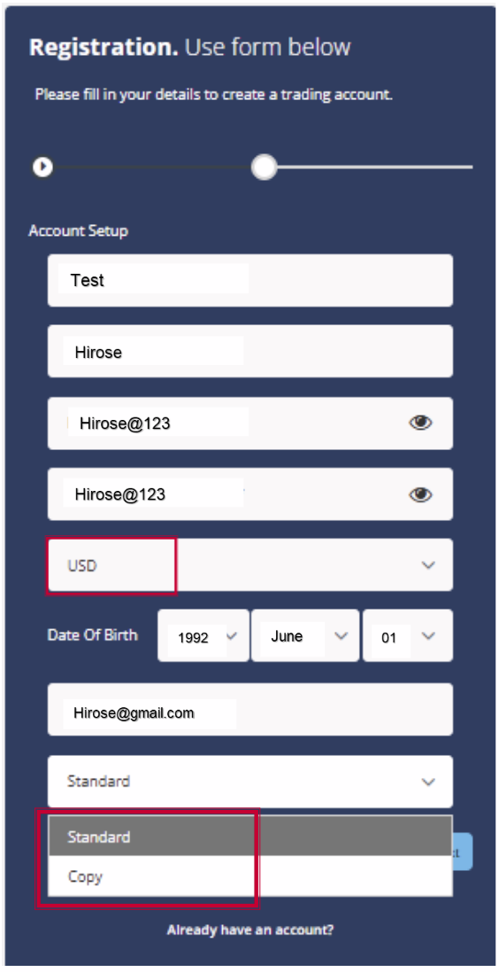 1. Create a live account from this link: https://my.hiroseag.com/register