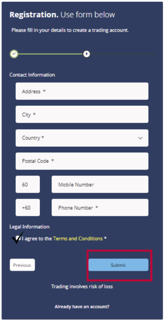 3. Fill up your contact information with your country code.