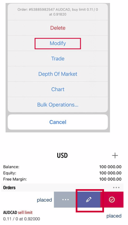 Modifying or Cancelling Pending Orders on MT5 (iOS Version)