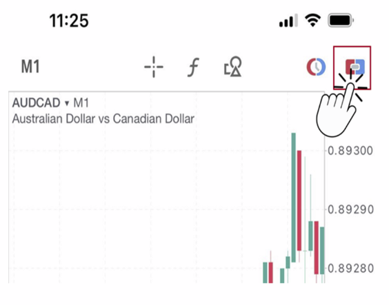 (1) On Chart Screen, tap the One-Click Trading button on the top right of the screen