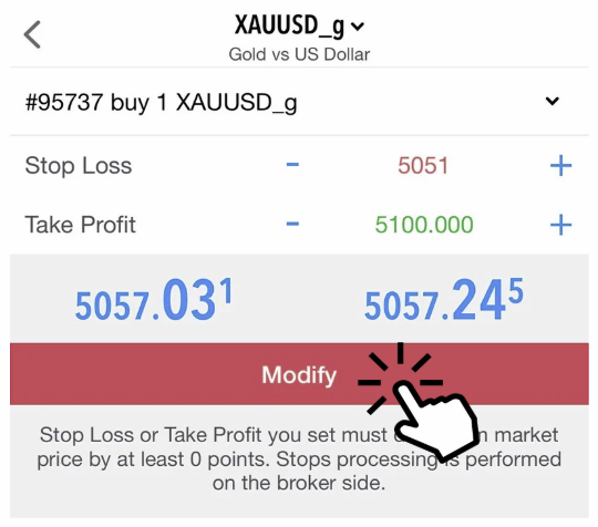 | Order Type | Stop Loss Must Be | Take Profit Must Be |
